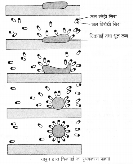 (iii) अपमार्जकों में अत्यधिक शाखित हाइड्रोकार्बन श्रृंखलाएँ होती हैं जिन्हें जीवाणु अपघटित नहीं कर पाते हैं, जबकि साबुन को जीवाणु आसानी से अपघटित कर देते हैं। इसलिए अपमार्जक जैव अनिम्नीकरणीय व साबुन जैव निम्नीकरण होते हैं।
